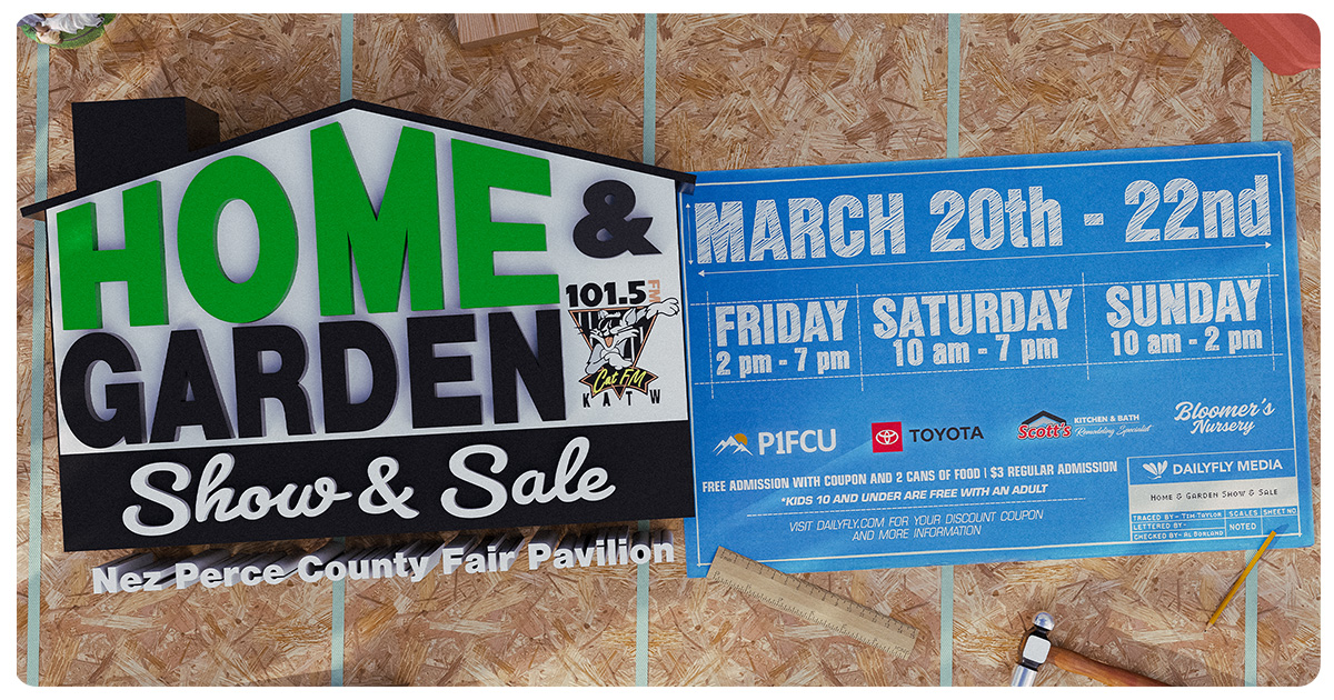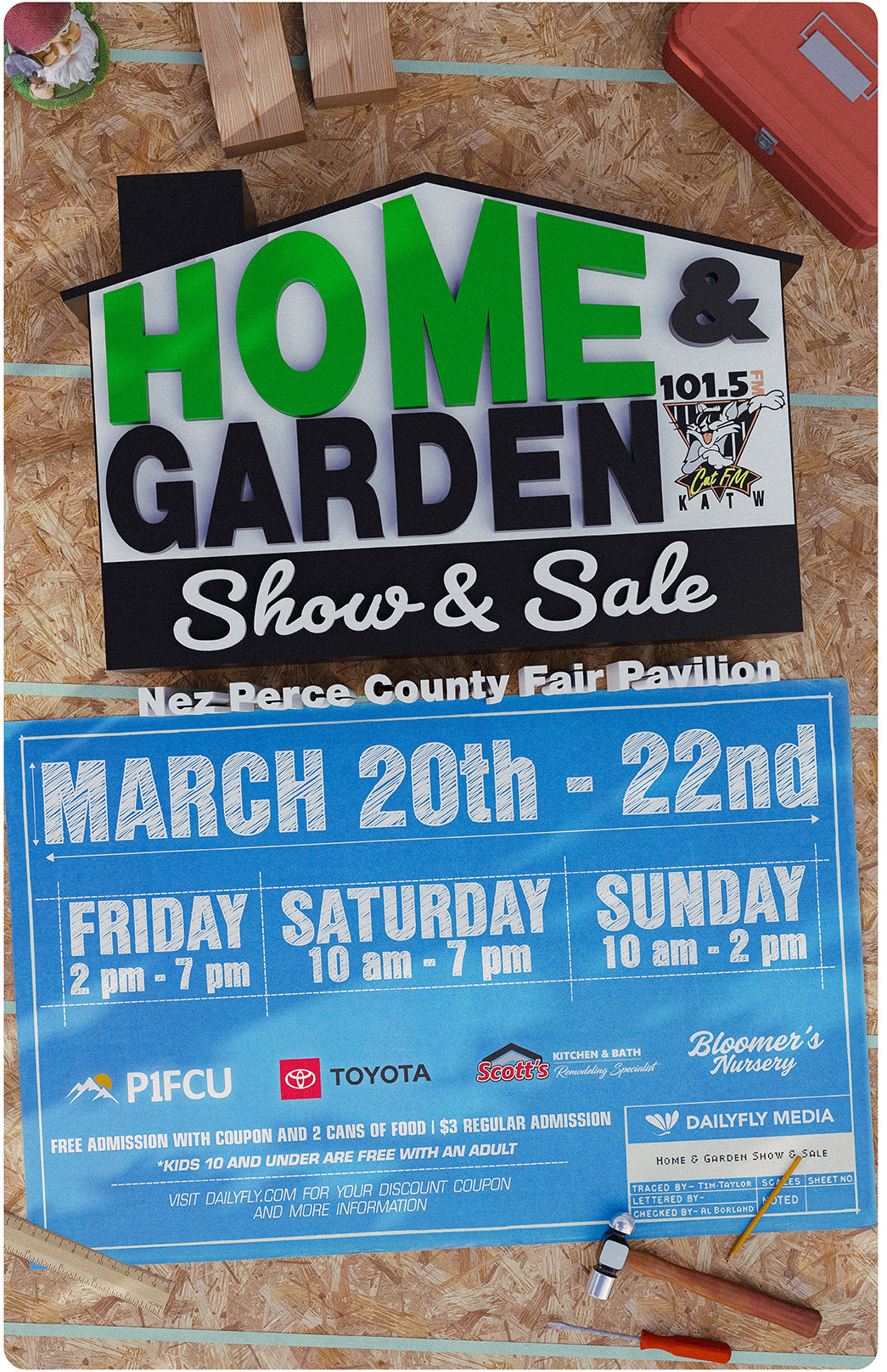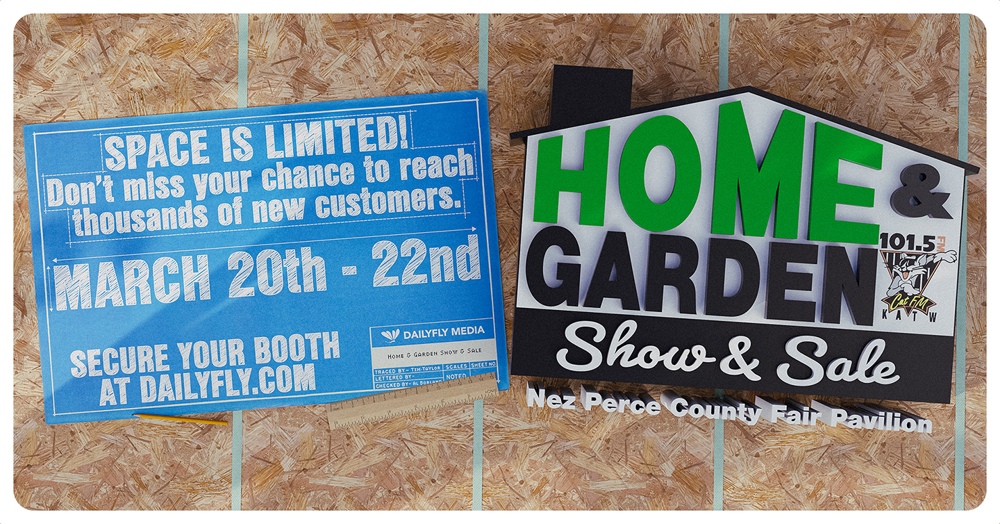 The 2024 design for the Home and Garden Show began with a reconstruction of the event’s logo. During the process of creating a vector version of the logo, a three-dimensional model was also developed. Using an image of the empty fair pavilion as the background, a 3D layout was created in Blender. fSpy was used to generate a virtual camera that matched the perspective of the photograph, allowing the 3D models to be accurately integrated into the scene. Final compositing was completed in Photoshop. This design established the annual concept of incorporating three-dimensional, home and garden-themed visual environments.